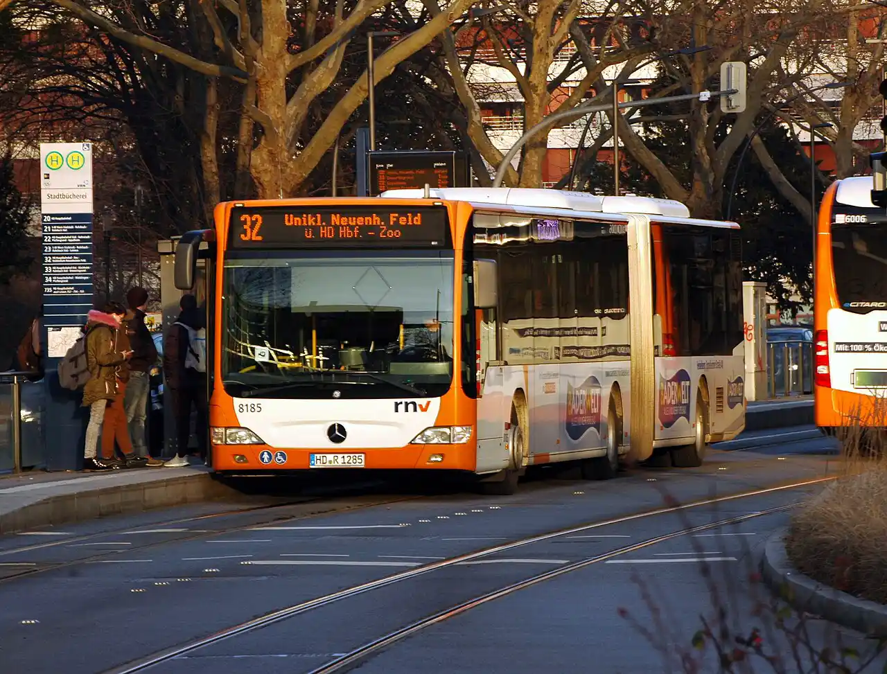 RNV (Rhein-Neckar-Verkehr GmbH) es la empresa que gestiona el sistema de transporte público en Heidelberg, Mannheim y Ludwigshafen.
